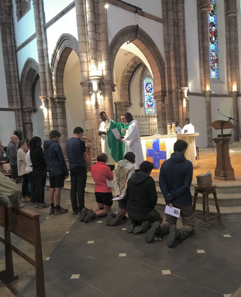Le Chemin de St Jacques de Compostelle – sur la via Podiensis – traverse la Paroisse St Bernard d’Olt sur une cinquantaine de kilomètres, d’Aubrac à Estaing. Les prêtres et membres bénévoles de la Paroisse ont eu très tôt à cœur d’offrir aux pèlerins et marcheurs un accueil et un accompagnement qui témoigneraient de leur foi, source d’hospitalité. Cet accueil se manifeste tout d’abord par l’ouverture des églises du chemin tout au long du jour. Dans chacune de ces églises, une fiche invite le pèlerin, au cours de sa visite à prendre le temps de faire connaissance avec ce lieu, d’y déambuler, et peut-être de s’asseoir pour un temps de méditions et de prière. Ces fiches, particulières à chacune des églises visitées (Dômerie d’Aubrac, St Chély d’Aubrac, Saint Côme d’Olt, Espalion et enfin Estaing où le chemin quitte la paroisse et la vallée du Lot) présentent d’abord l’église et son saint patron, offrent quelques textes des Pères de l’Eglise et des Saints et enfin une prière vient clore la visite du pèlerin. De plus, à chacune des messes célébrées sur la Paroisse, le prêtre les invite à s’approcher du chœur afin d’y recevoir une bénédiction qui leur est spécialement dédiée.