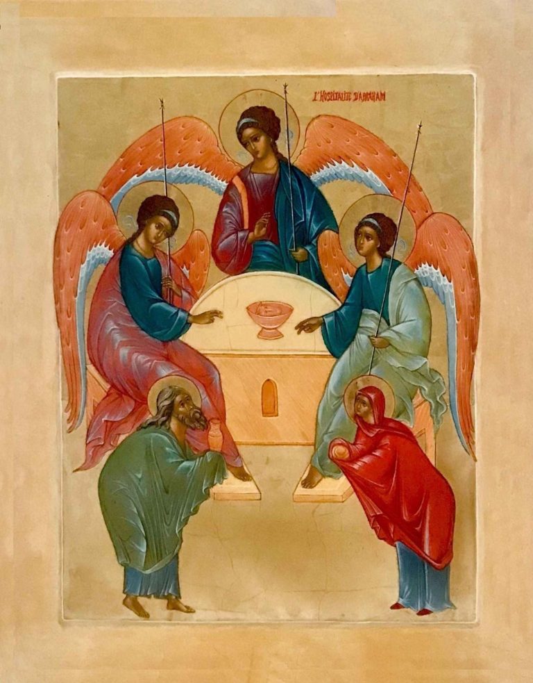 Tel Abraham accueillant Dieu lui-même dans son humble hospitalité, que nous sachions accueillir l'enfant Jésus en chaque pèlerin , voyageur, étranger, qui viendra frapper à notre porte.